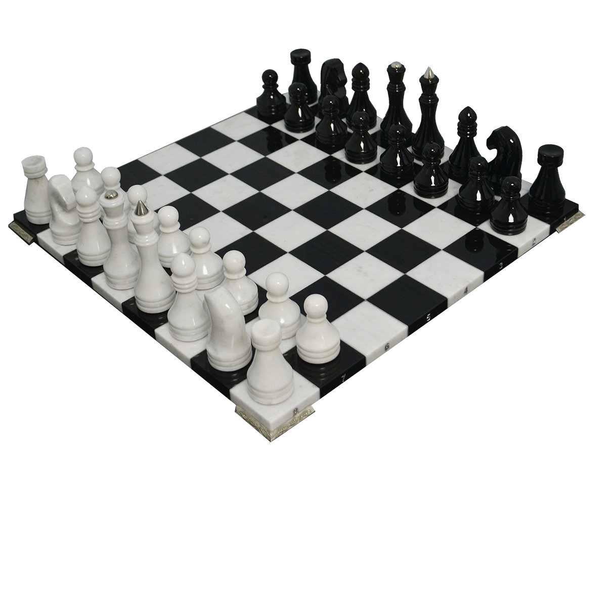 Шахматы из камня Ш-19 украсит любой интерьер. Материалы: черный обсидиан, белый мрамор, латунь .